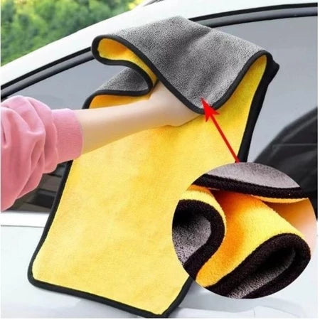 Um lado é feito com fibras longas e fofas, perfeito para secagem e remoção de ceras, enquanto o outro possui fibras curtas e densas, ideais para polimento e acabamento fino.